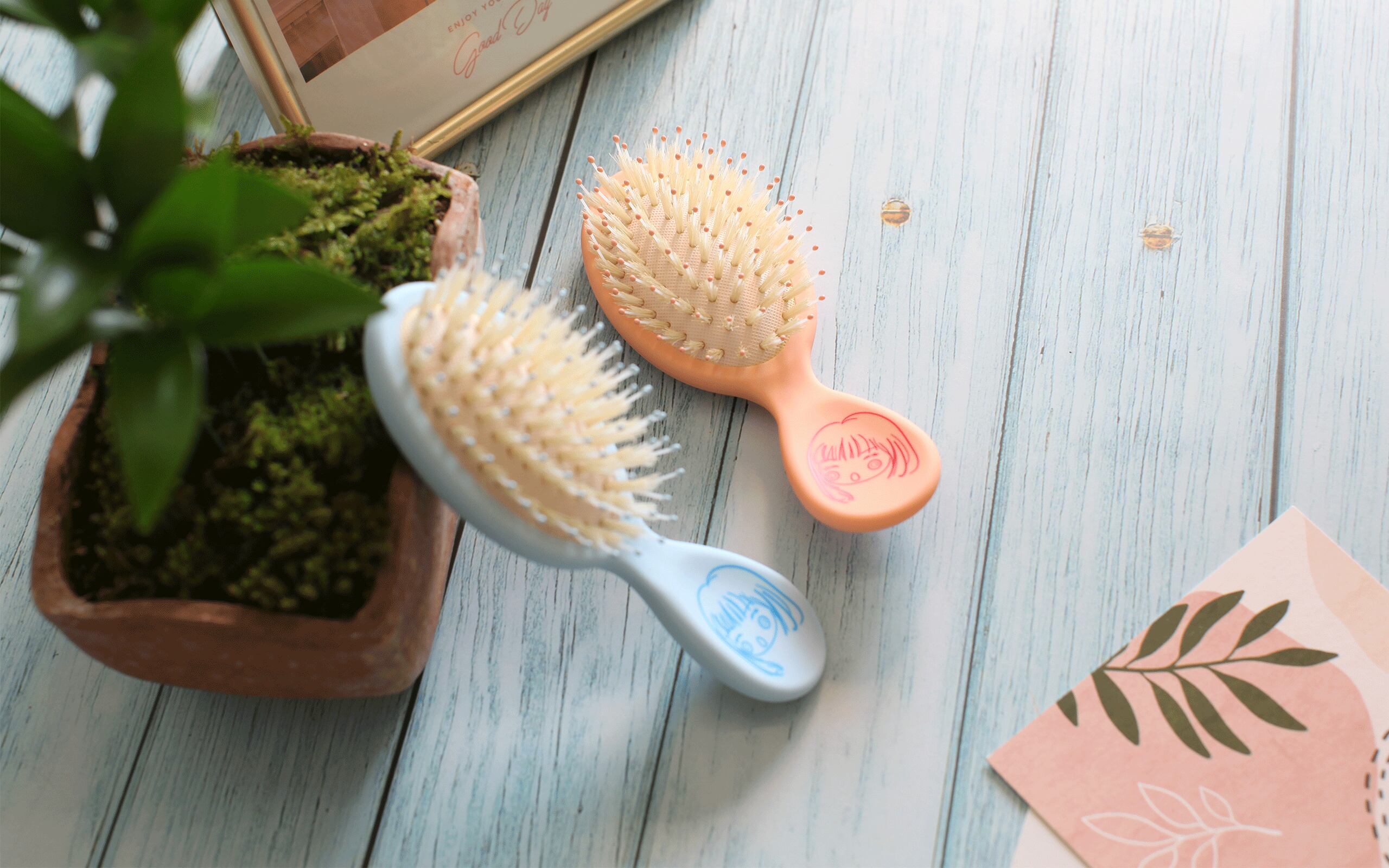 天然素材の猪毛を植え込んでおり、傷みやすいキューティクルにやさしい使い心地で、髪をつややかに整えると謳っています